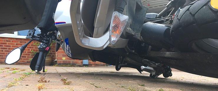 К счастью, он не рухнул на машину, стоя в гараже. И ещё лучше, что в это время на нём не сидела моя младшая - её 30 кило, кстати, максимальный вес, который приходился на боковую подставку, сам я никогда не сидел на нём с выдвинутой подставкой и не разворачивал, используя её как ось вращения. Но вообще подразумевается, что его можно и разворачивать, и садиться без вреда для мотоцикла и здоровья - тем более, что некоторых слонов типа моего KTM 1050 Adventure по-другому на малой площади не развернуть.