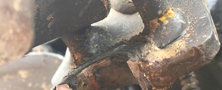 Ось подставки вставлена во втулку, вваренную в низ рамы. На низ этой втулки приходится довольно немалое усилие на излом - и когда она трескается, подставка вываливается. Увы, но по всему выходит, что у моего мотоцикла сломана рама. Пусть и не в самом значительном месте.